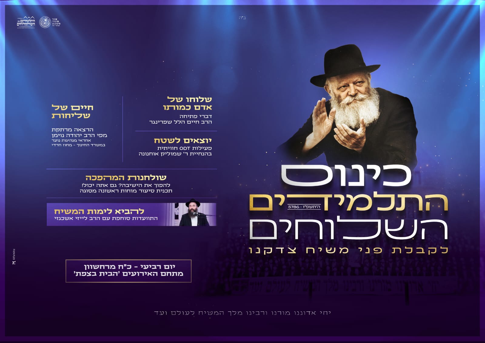 אתמול בערב (ראשון) התקיימה וועידת נעילה לסיכום כינוס השלוחים העולמי תשפ"ו – לקבלת פני משיח, באולם 'ליובאוויטשער ישיבה', בהשתתפות מאות שלוחים שהאזינו לנואמים וחיזקו אחד את השני בשליחות היחידה. האירוע עמד בסימן פועלים את השליחות היחידה – קבלת פני משיח צדקנו • צלם הכינוס לוי קרומבי מגיש גלריה נרחבת וסיכום