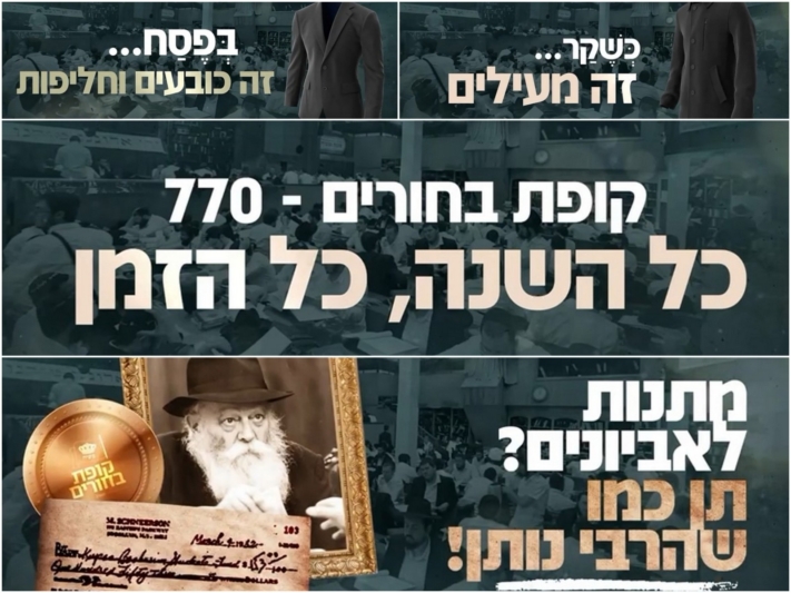 מידי שנה, ארגון קופת בחורים מחלק לקראת פסח כובע וחליפה לכל אחד מתלמידי התמימים בבית חיינו. מה באמת קורה בארגון קופת בחורים ב-770 ומהי הסיבה של הקמפיין העכשווי? • צפו • לתרומה באתר צ'רדי לחצו כעת