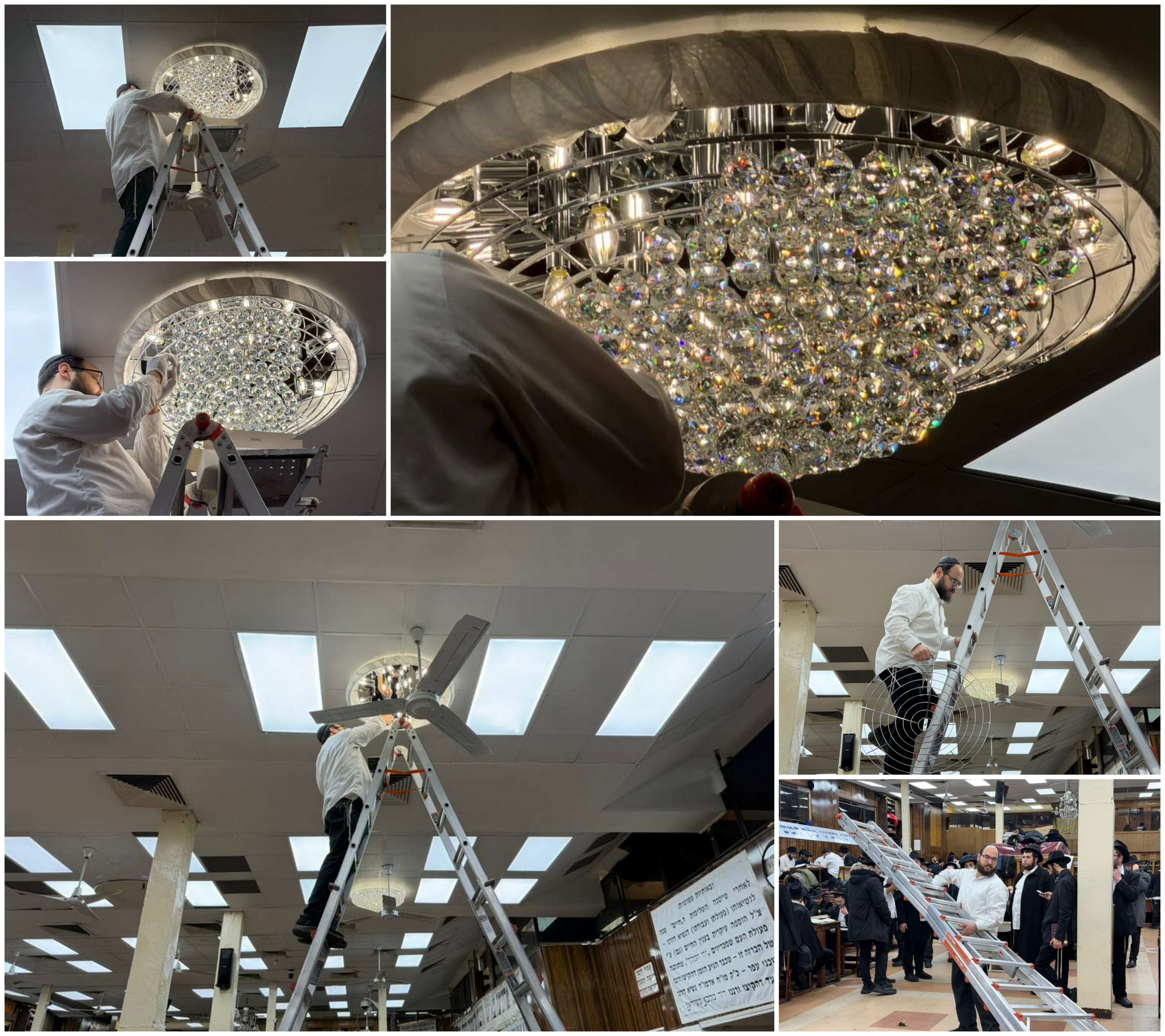 עם סיום כינוס השלוחים העולמי בחצרות קודשנו ולקראת חודש כסלו, נמשכים השיפוצים בבית חיינו. אמש, הותקנו 4 נברשות חדשות מרהיבות שיוסיפו בפיאור בית ה' למען הלומדים והמתפללים הרבים בזאל הגדול ב-770 • כתב חב"ד אינפו תיעד את התקנת הנברשות החדשות • לתיעוד