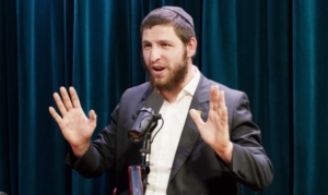 הרב ריצ'מן פותח את המדרש (תנחומא תצווה, פרשה יג) ומקריא בהטעמה:
