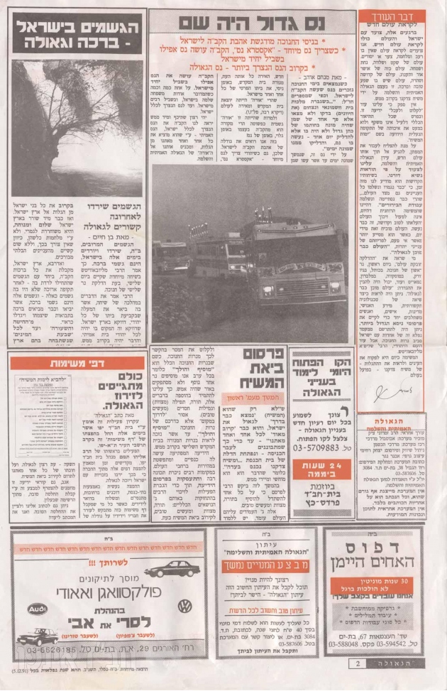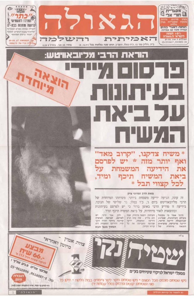 "כפי שנהוג בעולם, שכשמתקבלת ידיעה מיוחדת, ובטח 'ידיעה חדשה' ו'ידיעה משמחת' – לא מחכים לזמן הרגיל בו העיתון יוצא לאור… אלא כל עיתון מדפיס מיד "הוצאה מיוחדת" ומדווח שכעת הגיעה למערכת הידיעה המשמחת שנוגעת ומעניינת וקשורה לכל אחד ואחד מהקוראים, ובנידון דידן – קשורה עם כל יהודי בעולם, הידיעה שלא רק שמשיח כבר נמצא בדרך, ונמצא כבר קרוב כל כך לבית כנסת זה ולכל אחד מאיתנו, אלא שתיכף ומיד נפתחת הדלת ומשיח נכנס לכאן.."