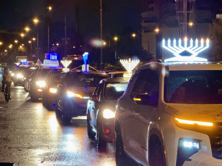 כ-50 רכבים מעוטרים בחנוכיות מוארות השתתפו בשיירת האור הגדולה לקבלת פני משיח שהאירה את רחבי הקריות. השיירה יצאה, למרות הגשם השוטף, כמיטב המסורת ממרכז נפש חיה – חב"ד ליובאוויטש הקריות, בליווי מוזיקה שמחה ומבצעים במרכזי הקניות בדרך, בהשתתפות אנ"ש קהילת חב"ד בקריות • צילום: אבריימקה אייזנשטיין • צפו בתיעוד