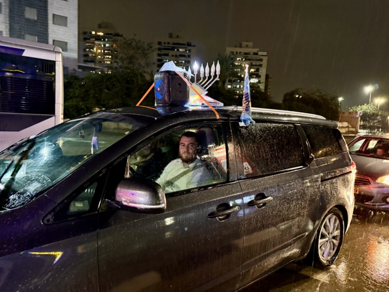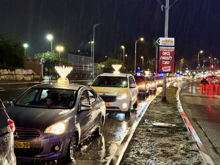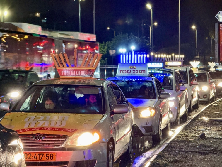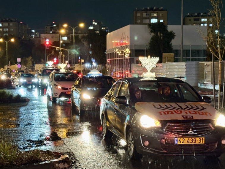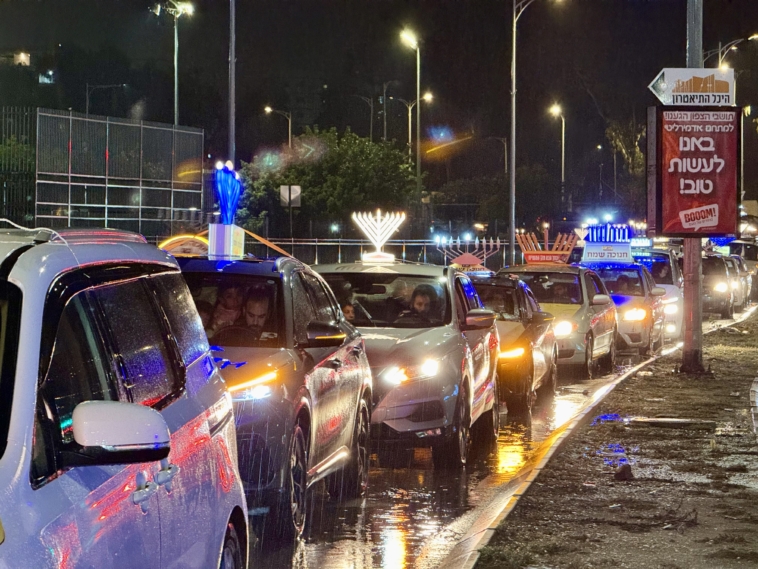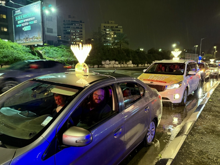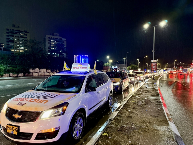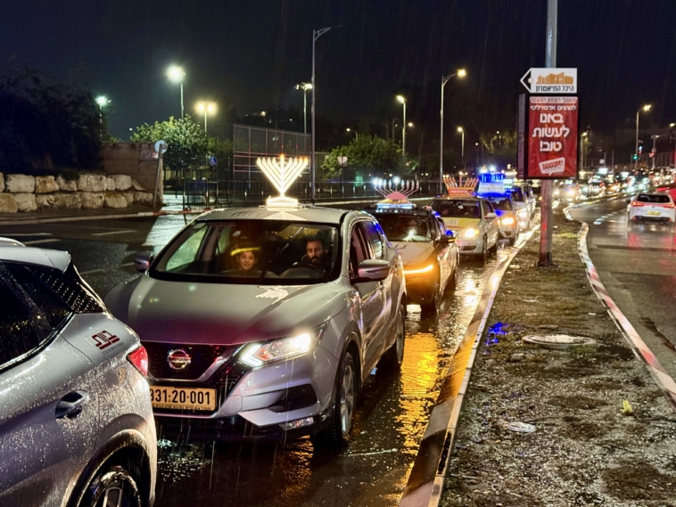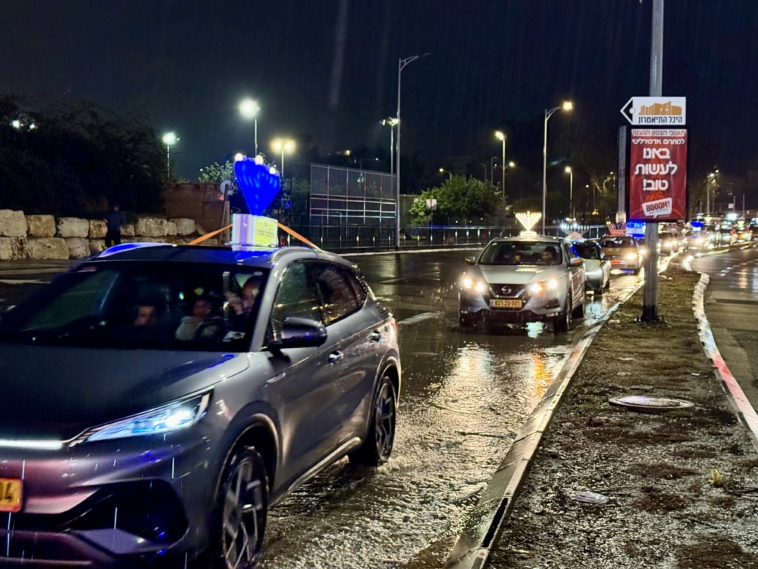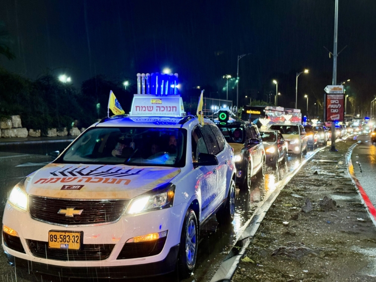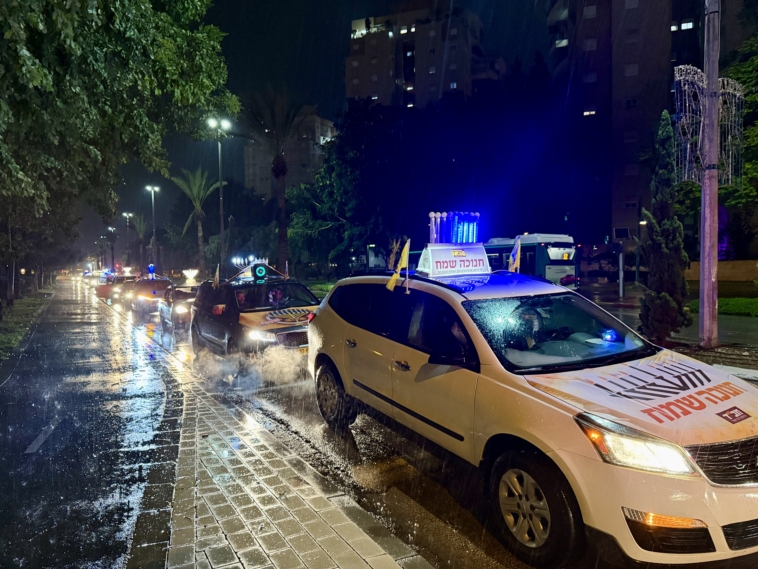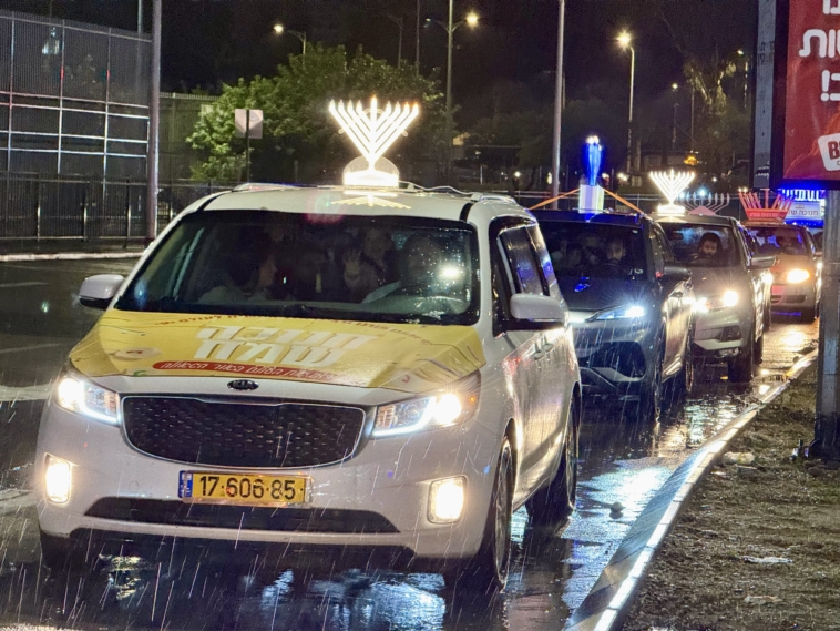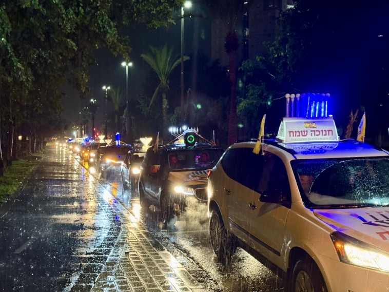 תחת גשם שוטף: שיירת האור של קהילת חב”ד כבשה את הקריות