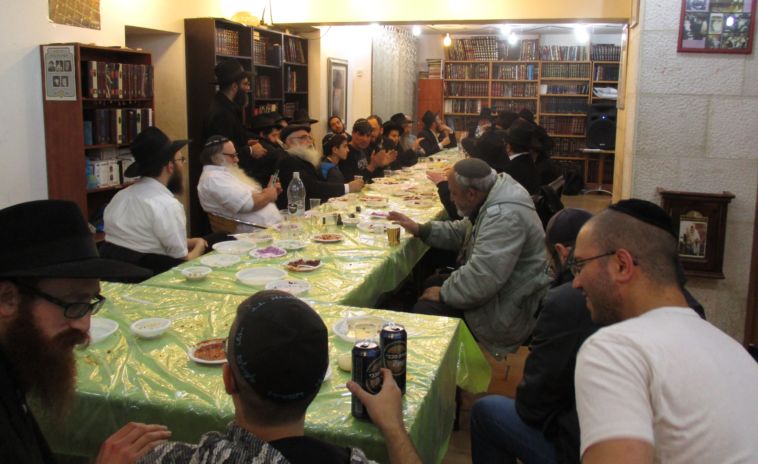 עשרות משתתפים התוועדו עד השעות הקטנות של הלילה עם הרב שמעון וויצהנדלר ראש ישיבת תומכי תמימים בראשון לציון, שהתקיימה במרכז משיח וגאולה בירושלים • לתמונות
