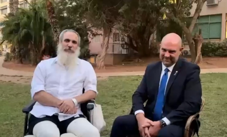 רב סרן (במיל') הרב לירז זעירא, שליח הרבי שנפצע קשה מפיצוץ מוקש בדרום סוריה ואיבד את שתי רגליו, הגיע לסוכת בית הרפואה "אסף הרופא" וקיים את מצוות נטילת לולב.