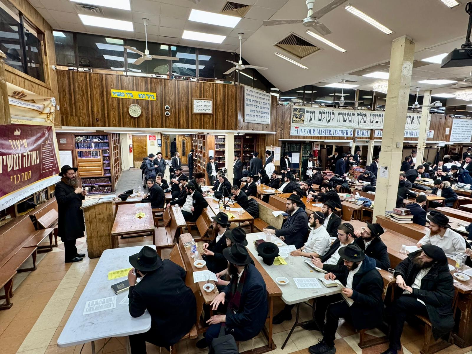 כמידי ליל שישי, השתתפו עשרות מתלמידי התמימים הלומדים בישיבת תומכי תמימים המרכזית בבית חיינו – 770, בשיעור גאולה ומשיח המרכזי, המתקיים במערב הזאל הגדול. השבוע מסר את השיעור הרב יהודה לייב וייסגלס • הצלם אלחנן סגל מגיש תיעוד מהשיעור