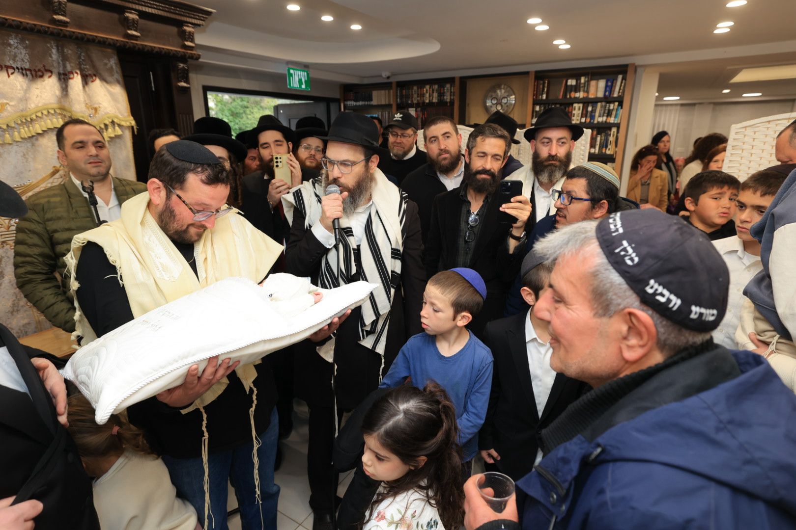באווירה מרגשת וחמה נערכה היום בירושלים שמחת ברית המילה לבנו של השליח בשכונת קטמון-המושבה, הרב אור זיו, בברית השתתפו מקורבים וידידים, לצד אישי ציבור מוכרים, בהם העיתונאי ינון מגל ויועצו של ראש הממשלה יונתן אוריך, בסנדקאות כובד רב קהילת חב״ד ברחובות, הרב מנחם מענדל גלוכובסקי • צילום: שמואל עמית • לגלריה