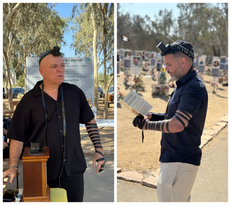 מגיש ערוץ 14 בועז גולן והכתב הצבאי של הערוץ הלל ביטון רוזן, נצפו בהנחת תפילין במתחם הנובה רגע לפני שידור במלאת שנתיים למלחמה. מי שהניח לשניים הוא הת' מנחם מולאקנדוב, מנהל בית חב"ד נובה, שמניח מידי יום תפילין למאות יהודים המגיעים לאנדרטה במקום • לתיעוד המרגש