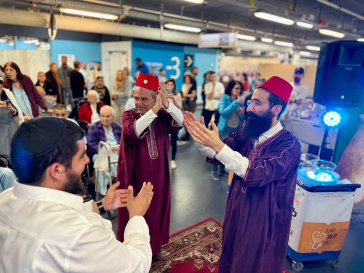 בעומק בית הרפואה התת-קרקעי שבמרכז הרפואי רמב"ם, בקומה מינוס 3 הממוגנת, נערכה חגיגת מימונה יוצאת דופן. לצד מופלטות חמות, פירות יבשים ושולחנות חגיגיים, התכנסו מאות מטופלים, בני משפחות ואנשי צוות רפואי לאירוע שמח ומרגש של 'לב חב"ד', כמיטב המסורת, ביוזמת שלוחי הרבי במרכז הרפואי, הרב שמואל וחנה טורקוב • צילום: אבריימקה אייזנשטיין • כך זה נראה